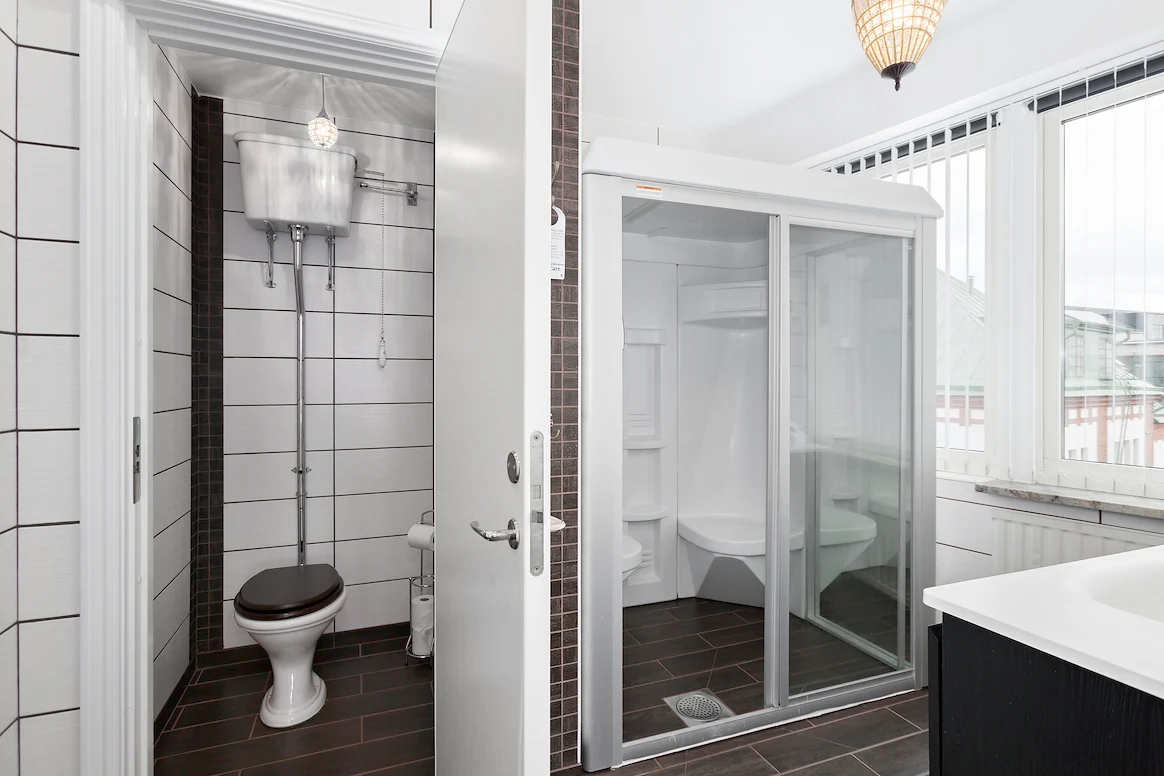 • Ångbastu, dusch och hårfön